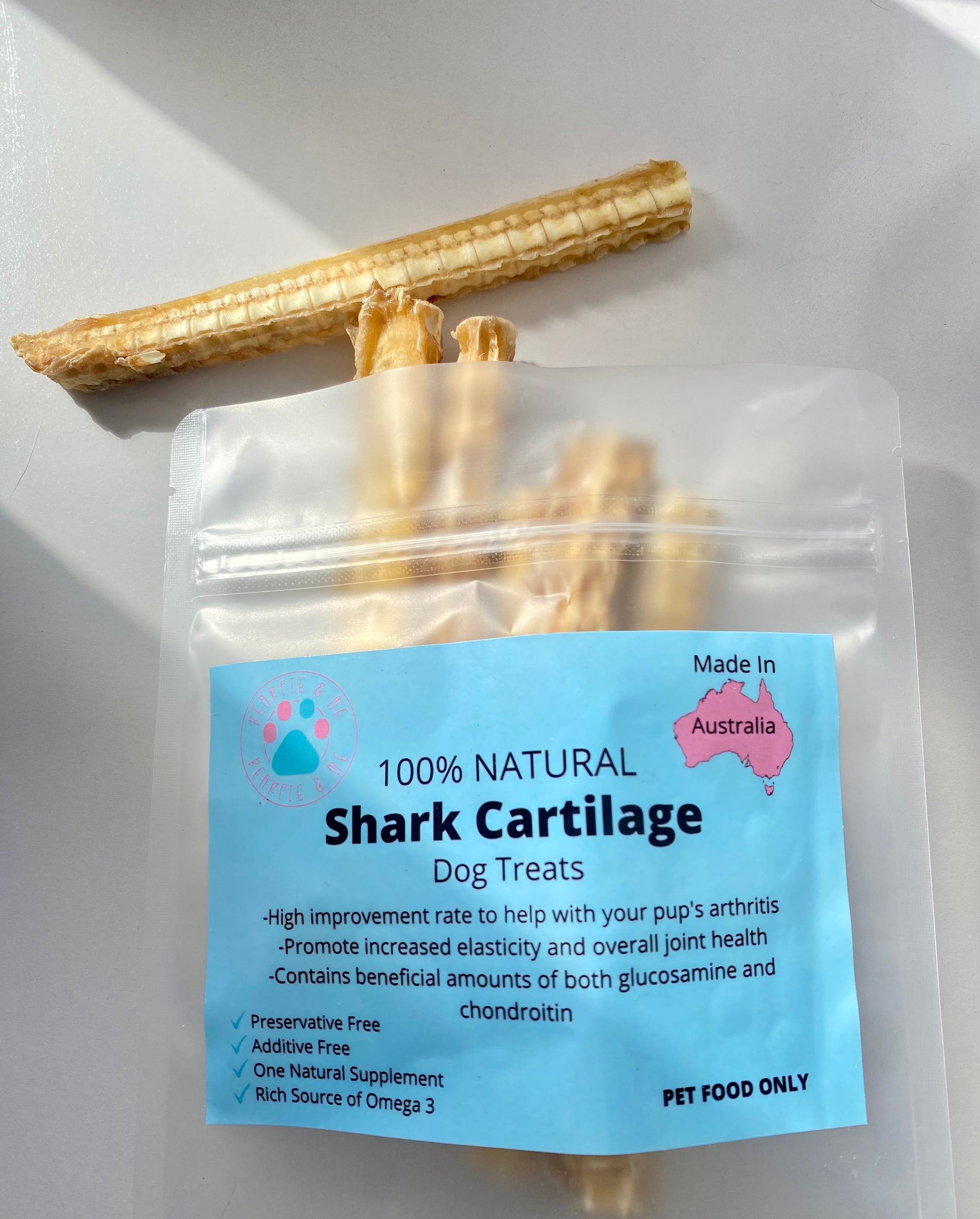 Our Shark cartilage are 100% natural, it has a high improvement rate to help with your pups arthritis, it promotes increased elasticity and overall joint health.